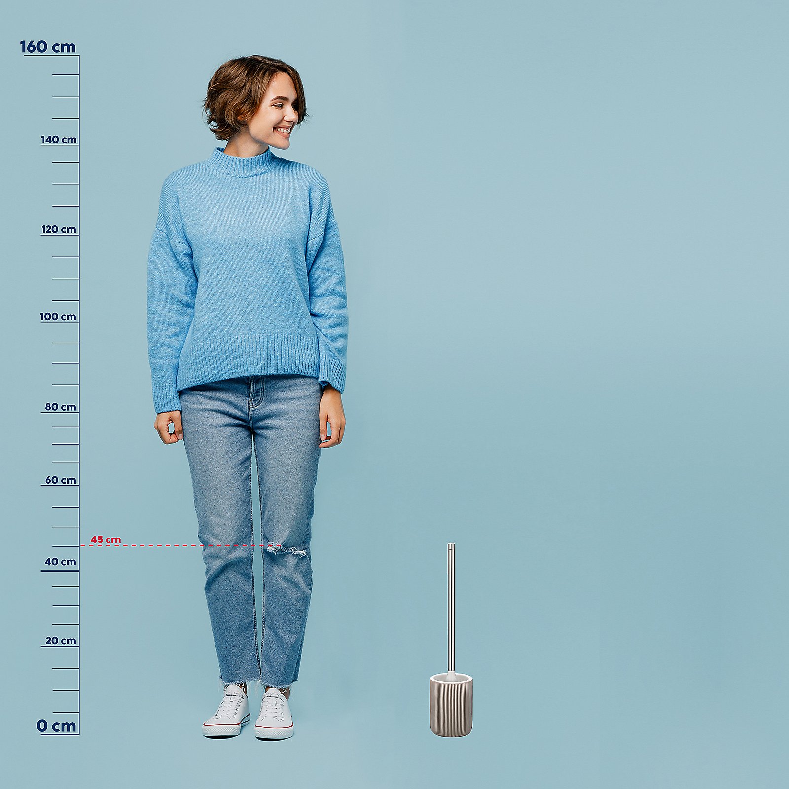 “Ava Toiletset – Deze keramische toiletset springt in het oog met zijn levendige kleur. Naast zijn functionaliteit is het een eyecatcher in elke badkamer. Vervangende handgrepen en borstels zijn ook verkrijgbaar bij Kela. Afmetingen: 10 cm (B) x 45 cm (H), steengrijze kleur.”