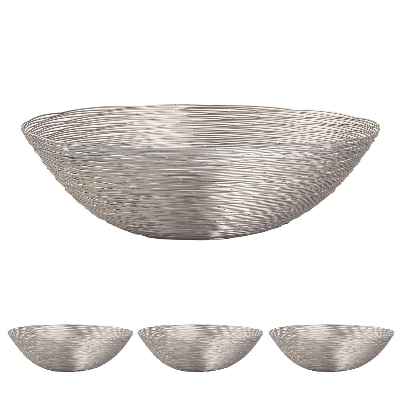 Fruitschaal ø 30 cm H 13 cm Broodmand Fruitmand Metaal rond zilver of goud zacht Metaal Draadstructuur