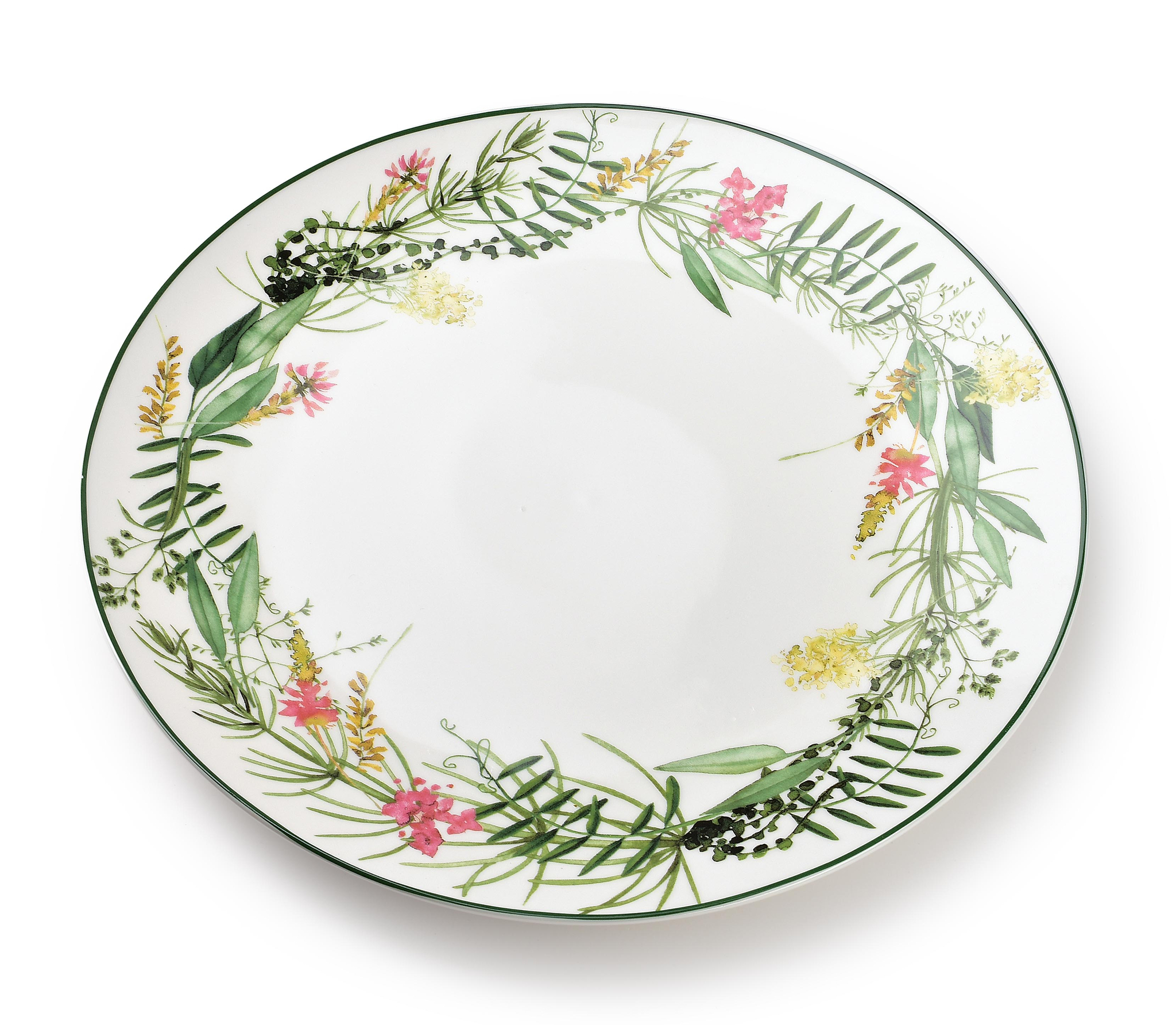 Porseleinen dinerbord uit de IDYLLISCHE collectie van AFFEKDESIGN. Deze serie kenmerkt zich door een lente-kruidenservies, dat warmte en vreugde brengt in uw eetkamer! Geschikt voor gebruik in de magnetron en oven. Gemaakt van New Bone China porselein. Afmetingen: 26,9×2,6cm, gewicht: 525g. Kwaliteit: klasse I. Voedselveilig. Verpakking: hoes. Vaatwasmachinebestendig.