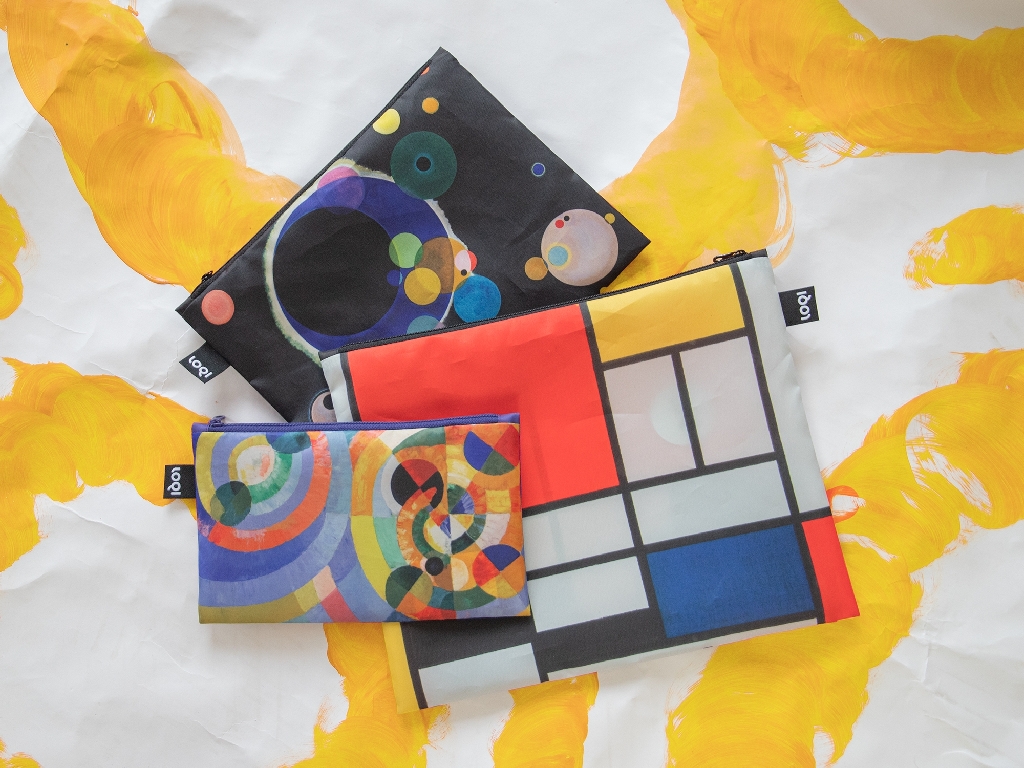 De kleurrijke geometrie van Mondriaan. De harmonieuze cirkels van Kandinsky. De prachtige kleuren van Delaunay. Deze kunstenaars hebben unieke artistieke stijlen ontwikkeld en de prachtige set gerecyclede zip-pockets van LOQI is een eerbetoon aan hun kunst. De set bevat 3 pockets in verschillende maten, perfect voor make-up, tandenborstel, schoon ondergoed, paspoort, camera of mobiele telefoon. Maten: Mini Pocket 13 x 23 cm, Midden Pocket 20 x 27 cm, Max Pocket 25 x 32 cm. Gemaakt van 100% gerecycled polyester, waterbestendig, en zonder watergebruik bij het printen.