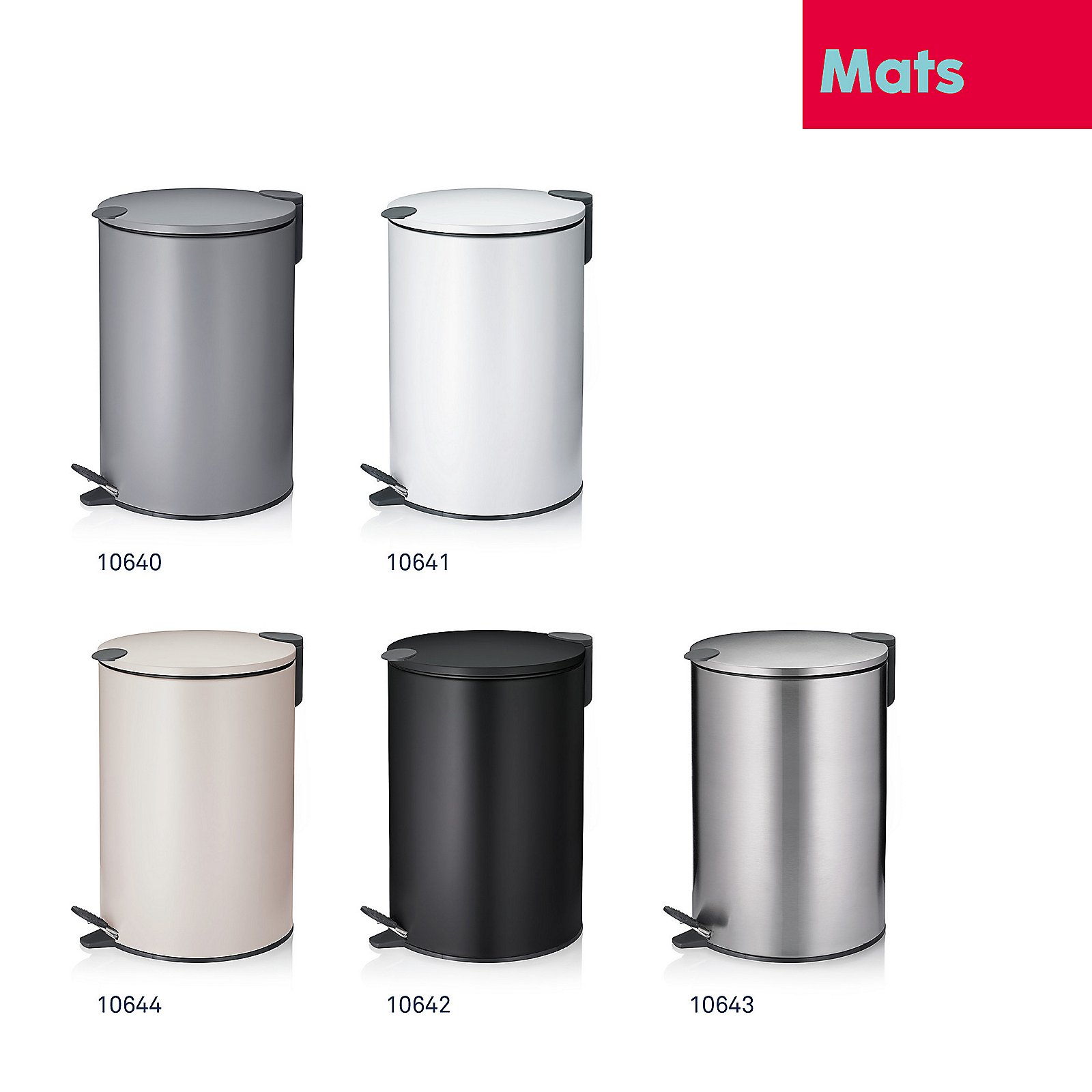 “Metalen pedaalemmer Mats 12 L in mat zilver – de discrete oplossing voor afval. Het stille sluitsysteem zorgt voor geruisloos gebruik. De moderne uitstraling van de Mats pedaalemmer maakt hem een eyecatcher. Met antislipbasis voor extra stabiliteit.”