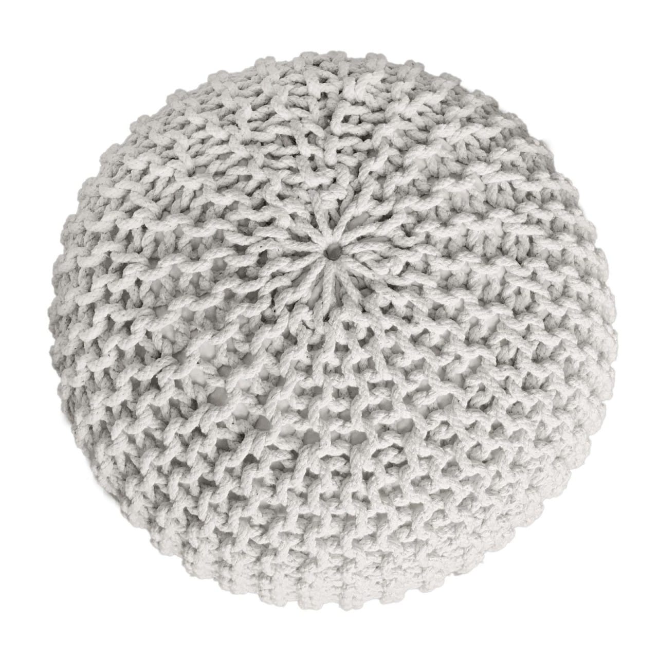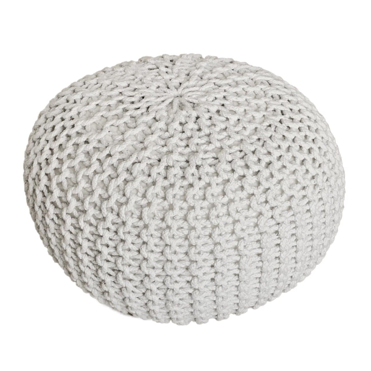 De Pouf Set met 3 stuks, elk met een diameter van 55 cm en een hoogte van 37 cm, biedt comfort en stijl. Deze gebreide poufs zijn duurzaam en handgemaakt van 100% gerecyclede katoen met een trendy grof gebreid ontwerp. Geschikt als extra zitplaats, bijzettafel, of voetenbank in elke kamer. Verkrijgbaar in de kleuren wit, beige en geel. Een veelzijdige toevoeging aan elk interieur.