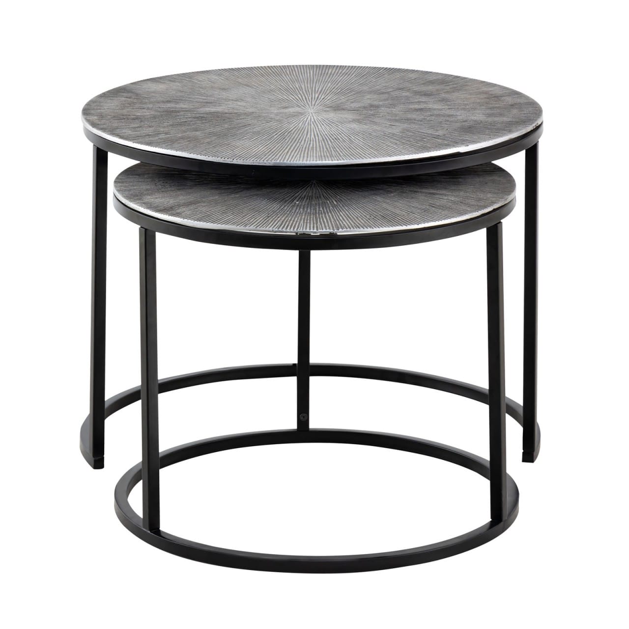 Salontafelset van 2 stuks ø 55 en 45 cm Bijzettafel zilver Metaal Ronde tafels Carlton Woonkamer