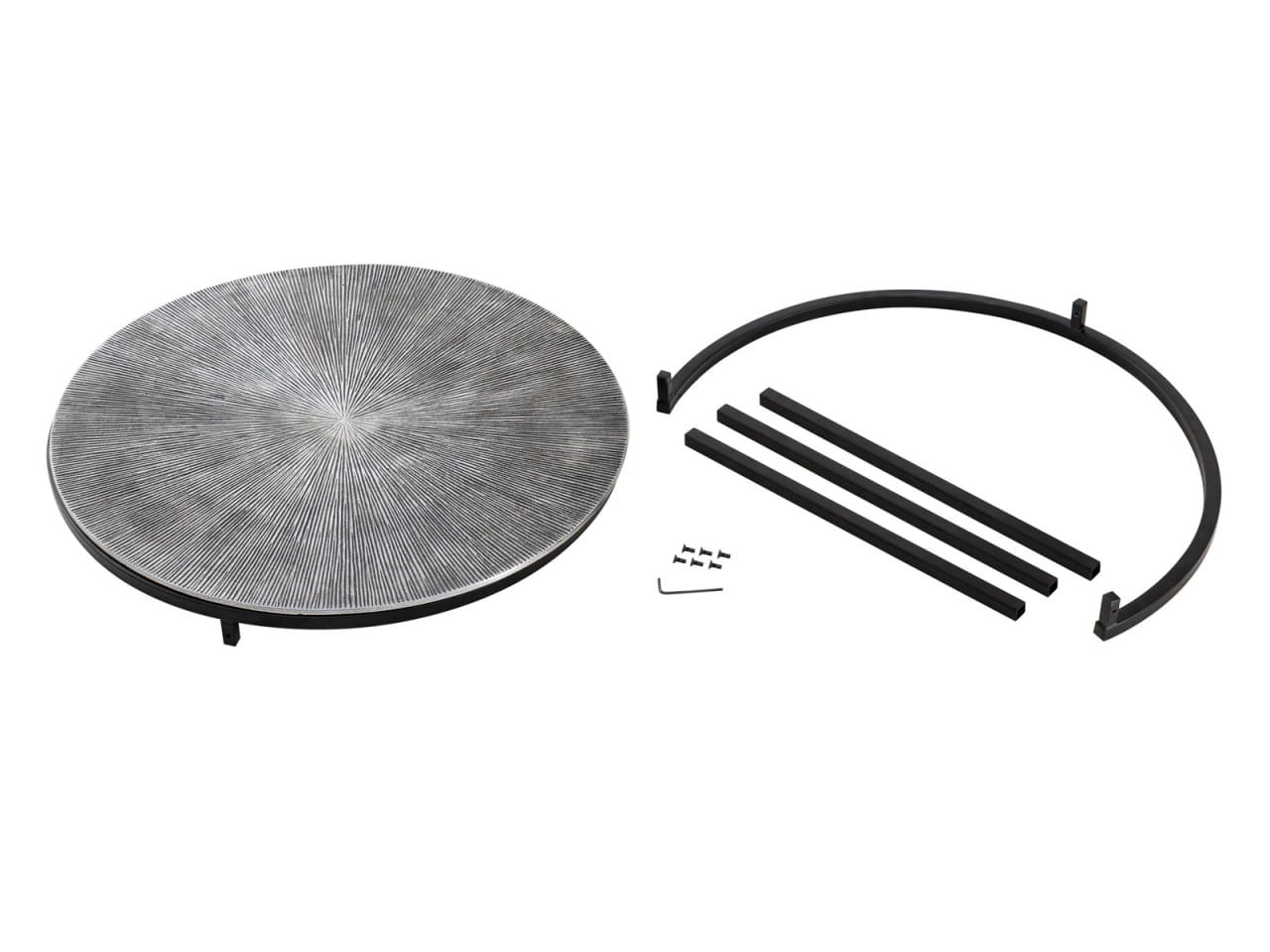 Mooi set van 2 salontafels in zilverkleurig metaal voor de woonkamer. De tafels hebben een vintage uitstraling en afmetingen van ø 45/55 x H 36/40 cm. Handgemaakt van gepolijst aluminium, met antieke afwerking en geschikt als bijzettafel of decoratieve tafelset. Perfect voor tijdschriften, boeken, telefoon of als decoratie met planten, schalen, kaarsen of edelstenen. Koop nu tijdloos meubilair voor het leven.