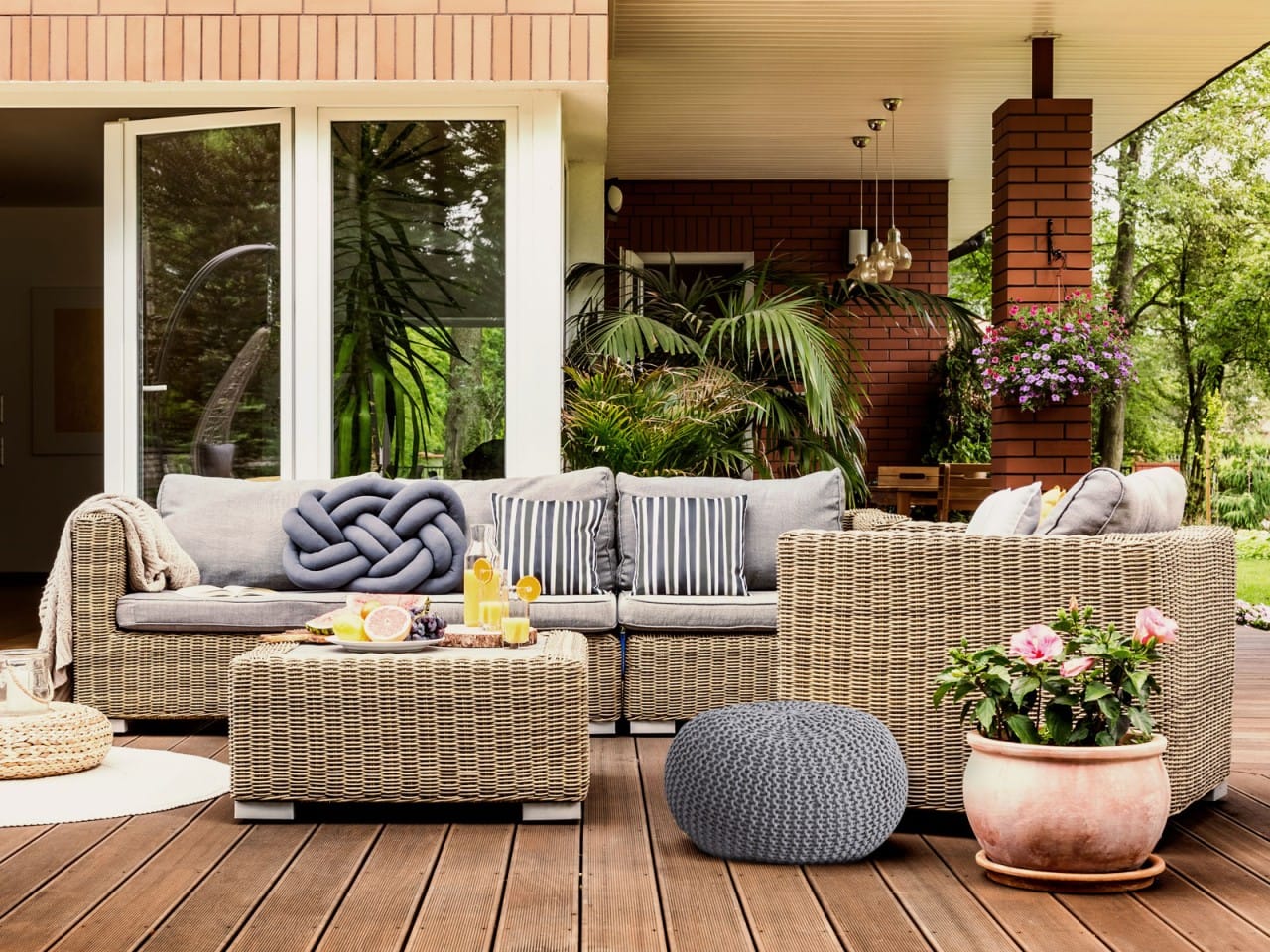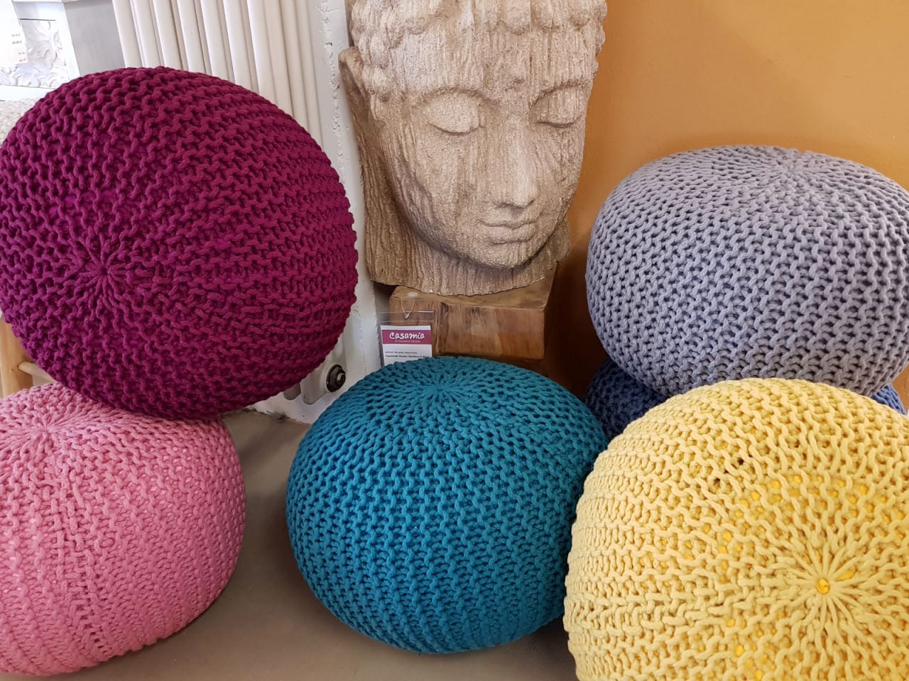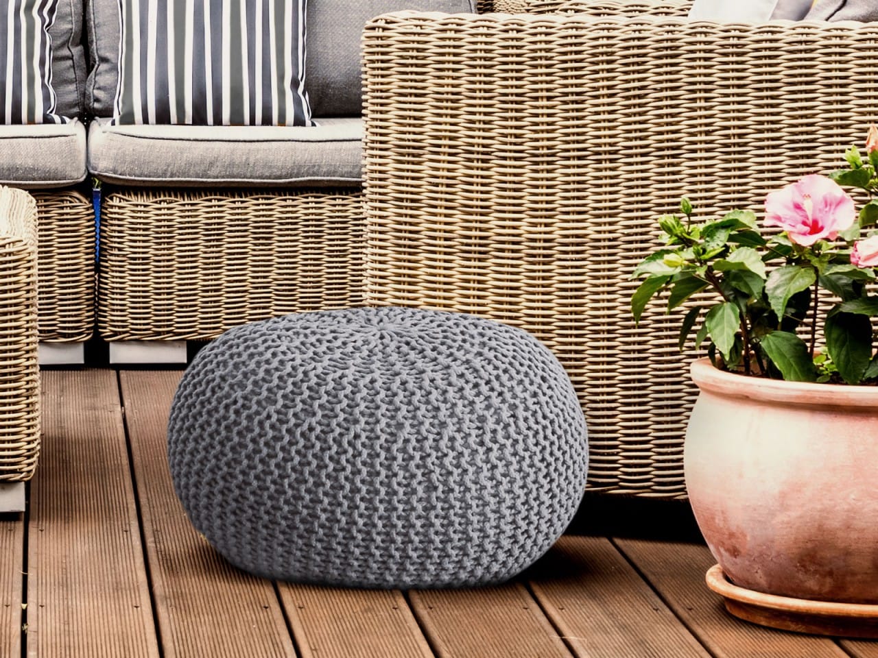 Zitpoef Gebreide poef Gebreide kruk Gebreide poef Ø 55cm PREMIUM Binnenplaats Zwembad Tuin Duurzaam