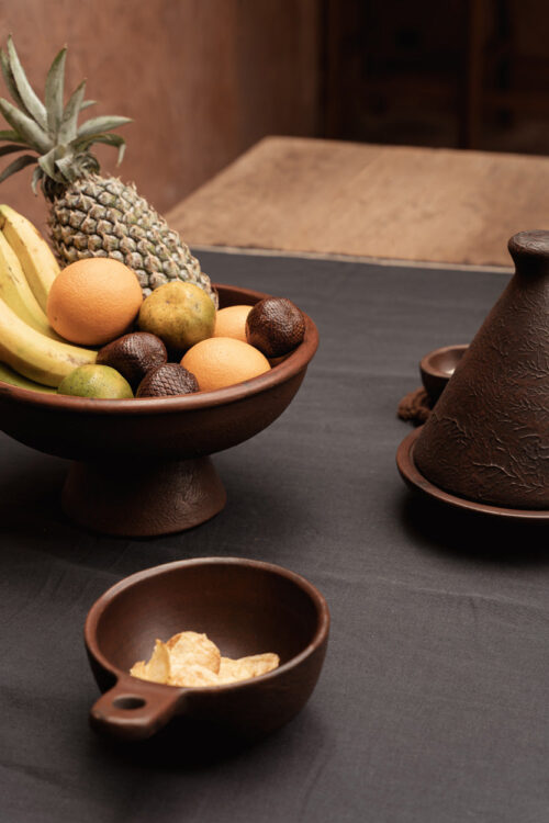 Enhance your dining experience with The Ethnic Bowl with Handle, adding rustic charm to your favorite meals. Crafted from terracotta, this bowl is ideal for soups, stews, and pasta. The handle makes serving effortless, blending practicality with style. Handcrafted to display terracotta's natural beauty, featuring warm tones and ethnic design. Geniet van je favoriete gerechten met een vleugje rustieke charme met De Etnische Kom met Handvat. Gemaakt van terracotta en perfect voor soep, stoofschotels en meer. Het handige handvat maakt serveren eenvoudig en voegt zowel praktisch nut als stijl toe aan je maaltijd. Elke kom is handgemaakt en toont de natuurlijke schoonheid van terracotta met warme, aardse tinten en een etnisch geïnspireerd design.